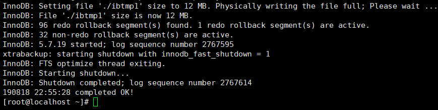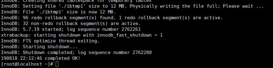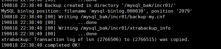 同样,出现"completed OK!"表示增备成功。