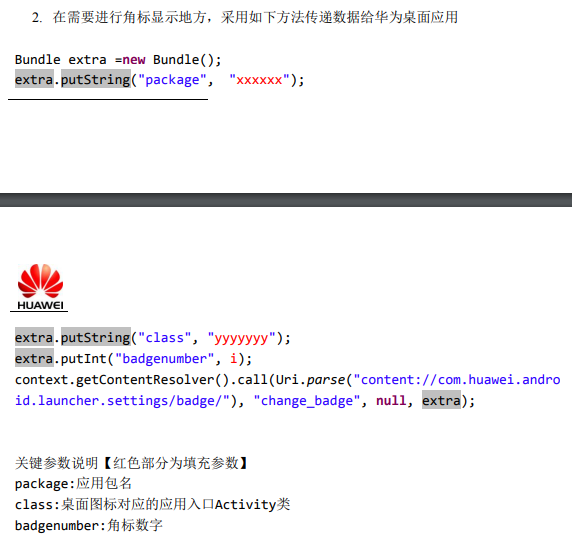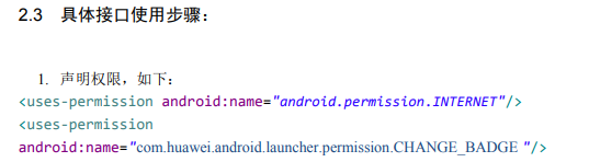 <uses-permission android:name="com.huawei.android.launcher.permission.CHANGE_BADGE"/>