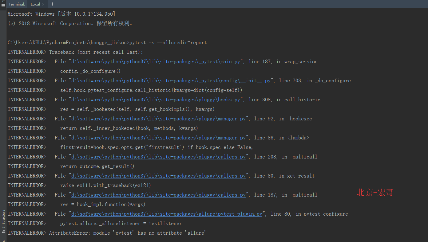 据了解,安装pytest-allure-adaptor。这个第三方库已经过时了,无法和现有的pytest搭配使用。宏哥这个先安装后期遇到问题再去处理。