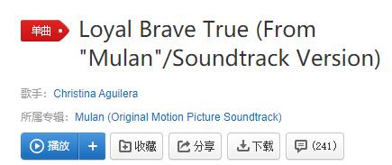 《Loyal Brave True (From "Mulan"/Soundtrack Version)》