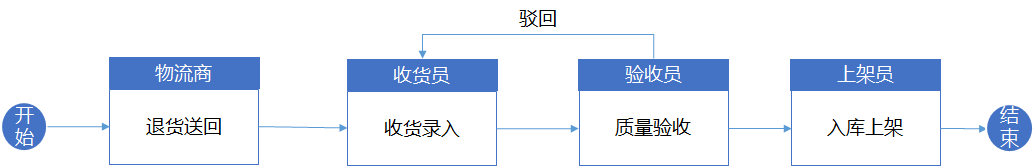 无论B2B退货,还是B2C退货,待商品退货库房以后,均需经过收货、验收以后,上架员根据验收的结论,将合格品上架至合格品区域,不合格品上架至不合格品区域。