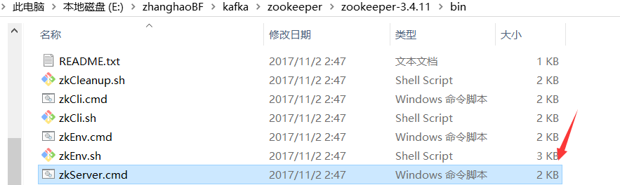 - 解压文件(我的目录是E:\zhanghaoBF\kafka\kafka_2.11-2.3.0 【PS:这里不要在Program Files等文件名之间有空格的目录下,不然一会执行会不识别路径】)
