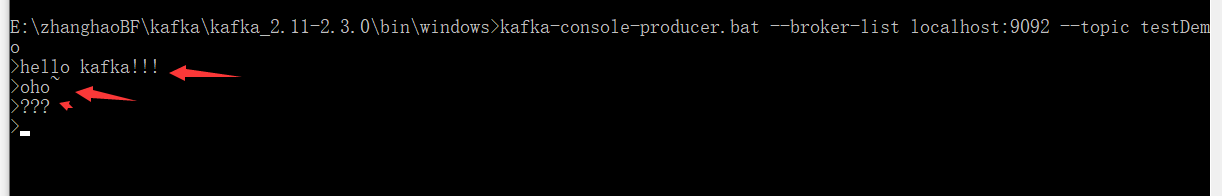 kafka-console-producer.bat --broker-list localhost:9092 --topic testDemo