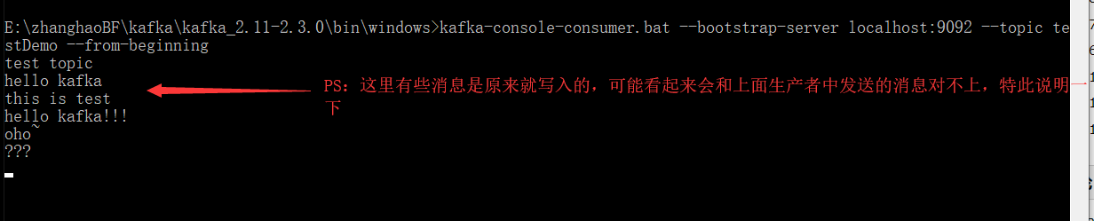 kafka-console-consumer.bat --zookeeper localhost:2181 --topic testDemo