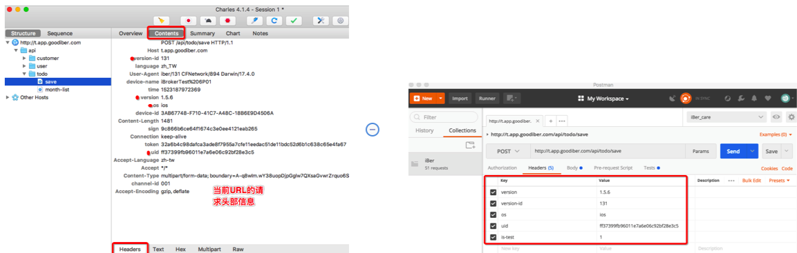 前提条件:想要执行某个接口测试,必须通过charles获取到如下内容的数据: