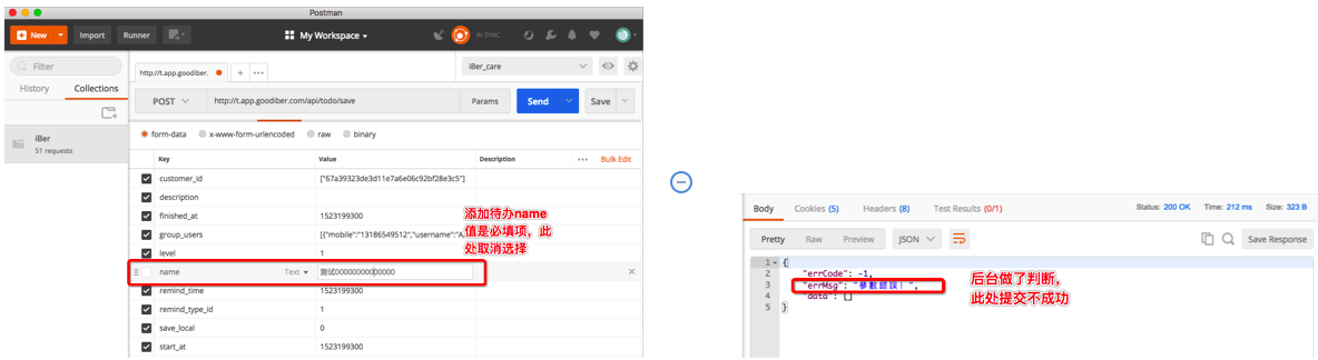 2.7、通过修改提交的参数,查看是否接口测试是否成功。此处可以取消必填项的参数提交。