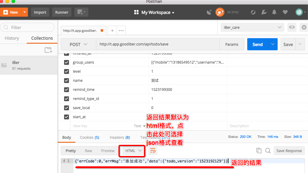 2.4、根据charles获取的返回数据填写到Postman中做比较,查看接口请求返回的数据是否正确