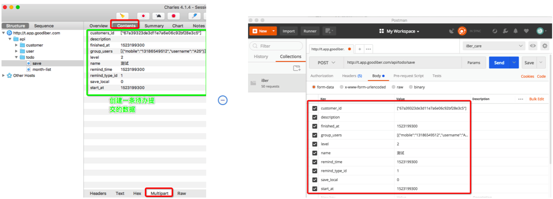 举例说明:我想实现本公司APP中的功能:创建一条待办事项,具体做法为:通过charles获取到如上所要要求的4步数据。