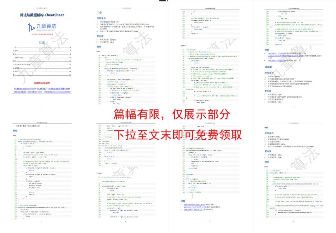 BATJ一线大厂算法小抄,拉到文末免费领取: