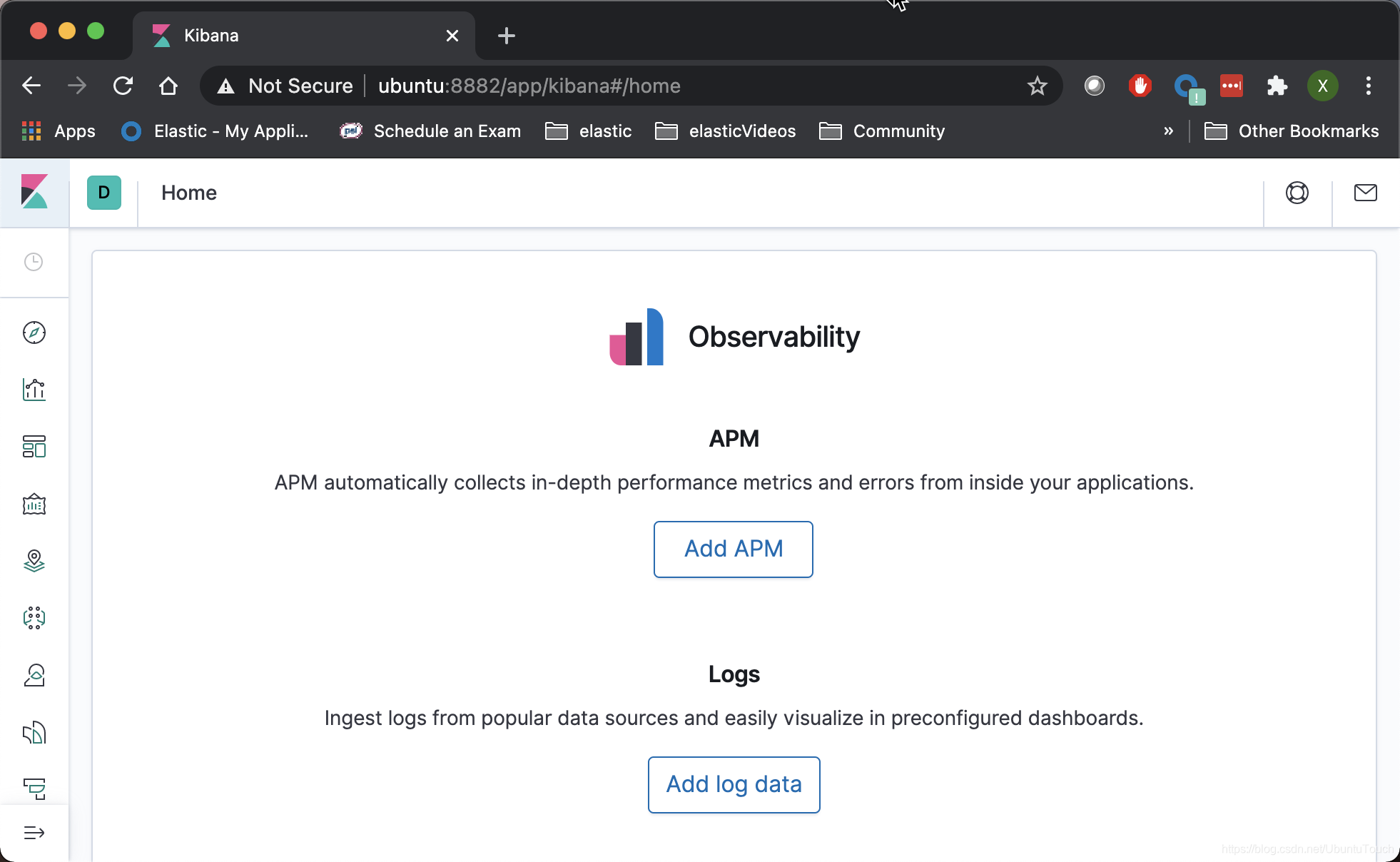 针对我们的实验,我们需要安装 Elasticsearch 已经 Kibana。请参阅我之前的文章 “Elastic:菜鸟上手指南” 进行安装。我都使用默认的配置。等 Elasticsearch 以及 Kibana 都起来之后,我们可以看到如下的画面: