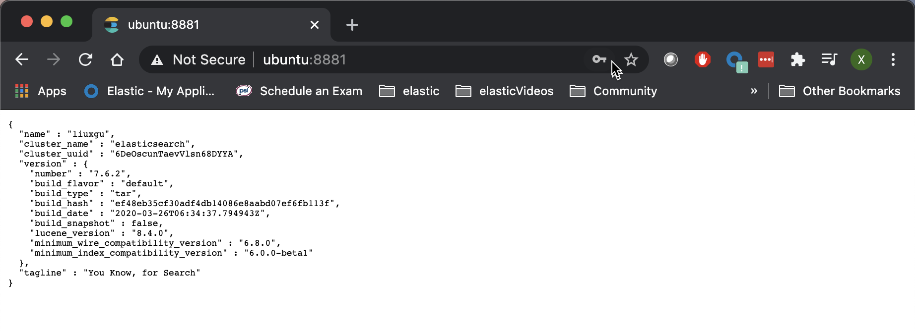 从上面的输出中我们可以看出来他需要验证才可以进行访问。我们接下来使用如下的方式来访问 Elasticsearch:
