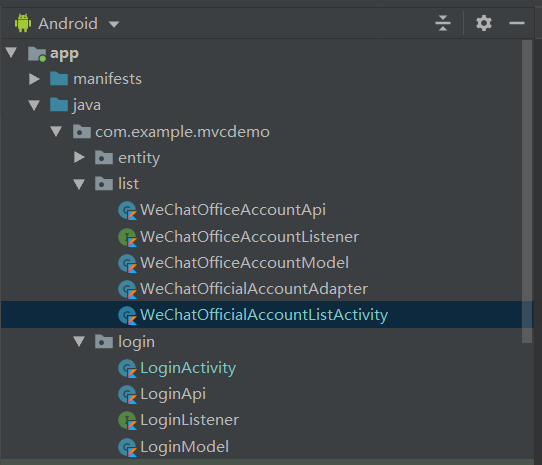(二)、设计Activity代码,即Controller层,WeChatOfficialAccountListActivity.kt代码如下: