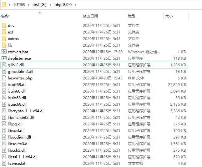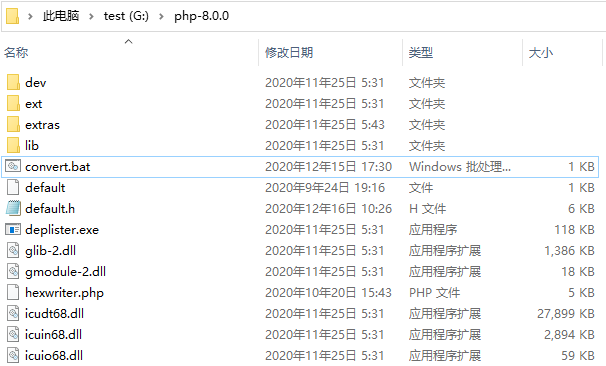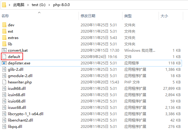 将修改后的default.html重命名为default,并拷贝至php-8.0.0.rar压缩包解压目录。