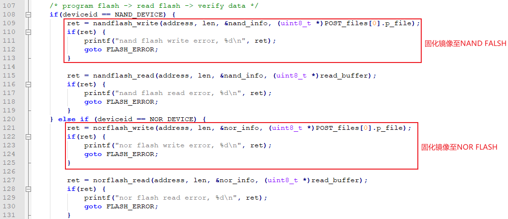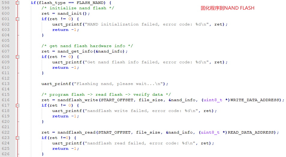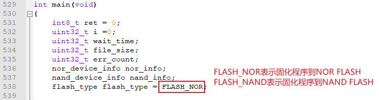 由main函数中flash_type变量指定固化用户程序至NOR FLASH或NAND FLASH。