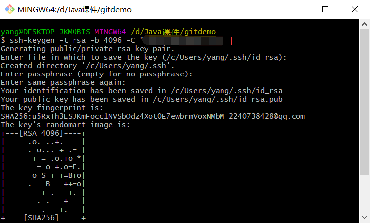 ssh-keygen -t rsa -b 4096 -C "your_email@example.com"" "里面是自己GItHub的邮箱