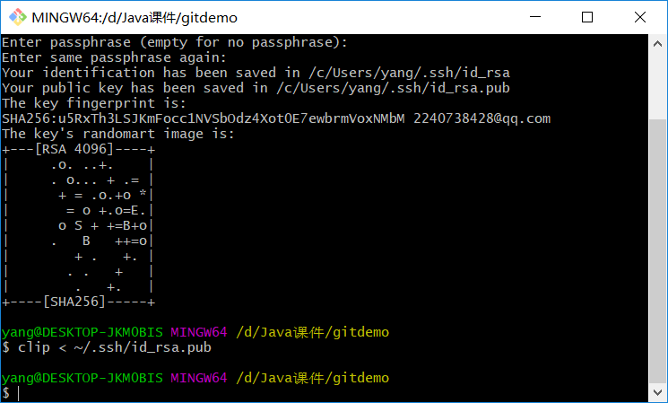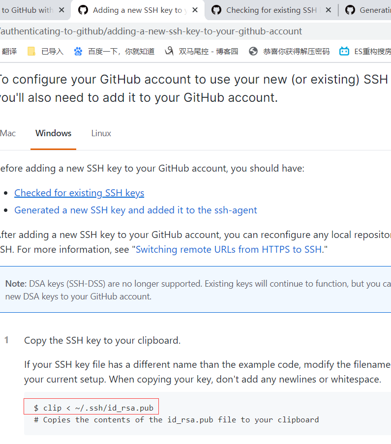 然后在输入clip < ~/.ssh/id_rsa.pub