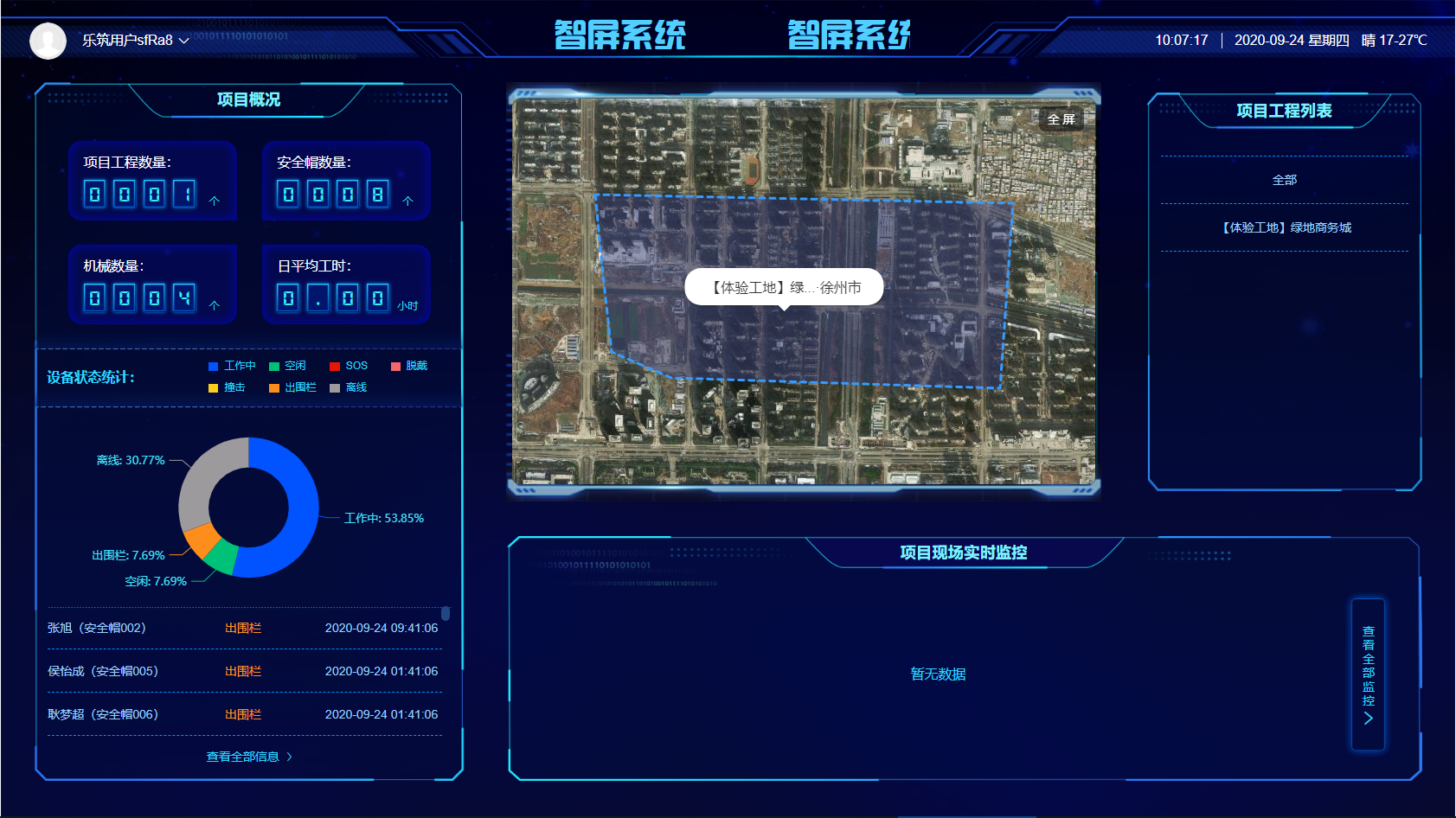 利用施工现场软硬件设备采集的数据, 能够直观的显示工地现场的实时信息,并能实现 “一个屏幕、统一管控”的智慧项目使用效果,可以算是项目的“智慧大脑”。
