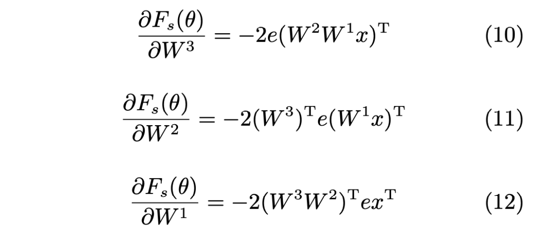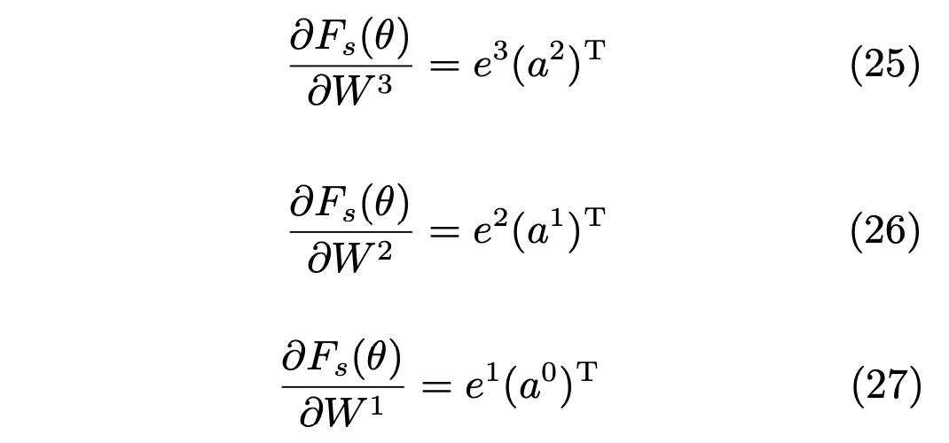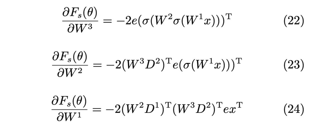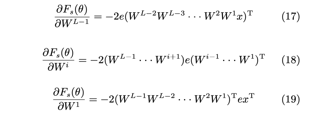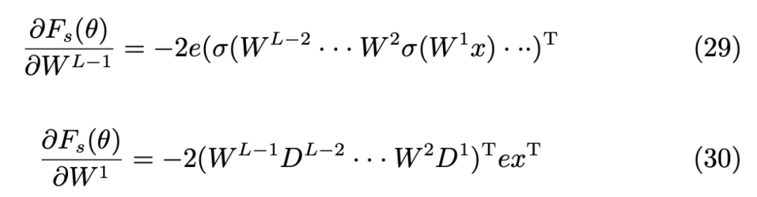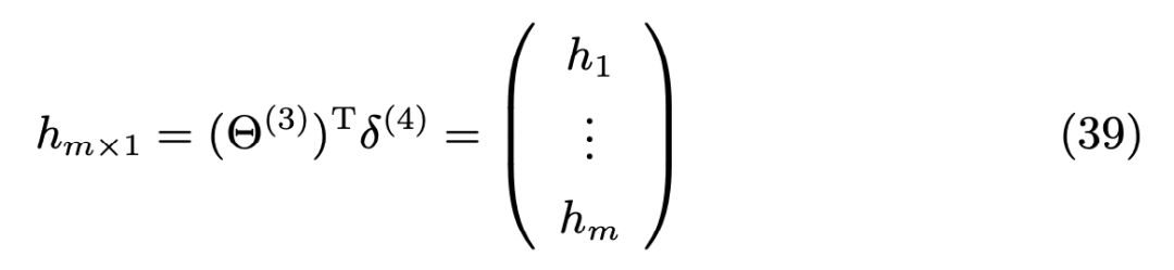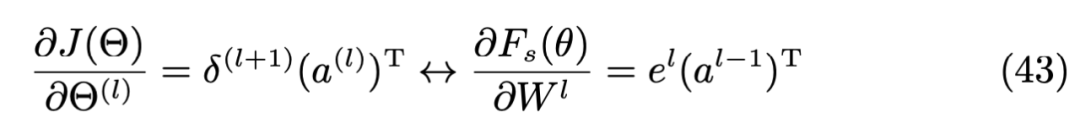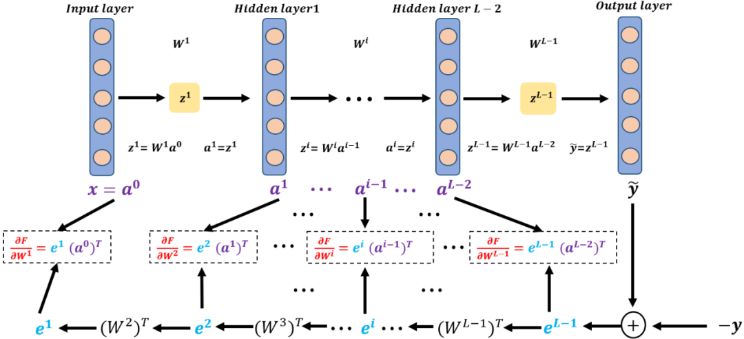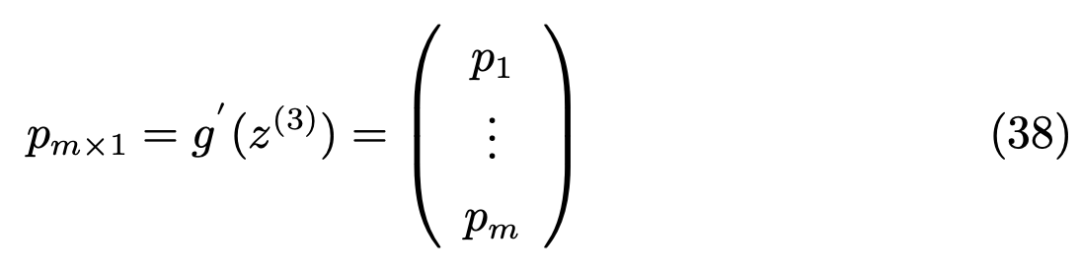 ©PaperWeekly 原创 · 作者|孙裕道 学校|北京邮电大学博士生 研究方向|GAN图像生成、情绪对抗样本生成 背景介绍 BP(反向传播)是有 Geffrey Hinton 在 1988 年发表的论文《Learning representations by back-propagating errors》 中首次被提出来。 该论文从题目到内容到参考文献一共 2 页半,Hinton 也借此工作荣获 2018 年的图领奖。在深度学习领域,BP 的重要程度在怎么强调也不为过,本文会从矩阵的视角对 BP 进行详细推导,为了更好地理解 BP 的工作原理,本文也画了大量的示意图帮助理解。 本文的公式经过自己很多次的推导打磨,尽力做到准确无误,每一张图也是反复的捉摸力求精准表达。本文的阅读难度确实很大,但是因为其重要,我觉得反复抄写下面的推导,也会有很多收获。 引言 在吴恩达的斯坦福机器学习的讲义中关于 BP 原理的介绍只给出了最后的 BP 矩阵的推导结果,略去了中间的推导过程。本文会对略去的推导过程进行补全。为了减少阅读阻碍,BP 矩阵证明过程会从预备知识开始慢慢铺展开来,其中最难啃的部分就是矩阵形式的链式法则。本文文章结构和的各个章节的内容如下: p 3 是一些预备知识介绍了矩阵求导的细节,如果想要看懂之后的 BP 矩阵推导这部分的两个小节一定要看明白 p 4 是关于 4 层无激活函数的 BP 推导细节 p 5 是关于 L 层无激活函数的 BP 推导细节 p 6 是关于 4 层含激活函数的 BP 推导细节 p 7 是关于 L 层含激活函数的 BP 推导细节 p 8 是对吴恩达机器学习讲义中关于 BP 章节结果的验证 预备知识 3.1 推导形式1 已知, 是标量即 , , , , , 表示向量的 2 范数,将矩阵中各个维度带入到公式(1)有如下形式: 令 , 。则对矩阵 的链式法则的求导公式如下所示: 其中 , ,直观可以发现等式(3)左右两边的雅可比矩阵维度一致。对矩阵 的链式法则的求导公式如下所示: 其中 , ,等式(4)左右两边的雅可比矩阵维度一致。 3.2 推导形式2 是激活函数, 是标量即 , , , , , 表示向量的2范数,将矩阵的各个维度带入到公式(5)中有如下形式: 令 , ,, ,则有: 其中,,即 是一个对角矩阵,对角线的元素为激活函数的导数。 和 矩阵的维度一致。 其中, 和 矩阵的维度一致。 4 层无激活函数的神经网络 ▲ 图1:4层无激活函数的前向传播过程 图 1 表示的是 4 层无激活函数神经网络的前向传播过程,其中损失函数如下所示: 令 ,根据 p 3 预备知识的推导形式 1 的公式(3),(4)可求得: 令 , , 。又因为 , , ,将公式(10),(11),(12)整理为如下所示: 根据公式(13),(14),(15)将 4 层无激活函数的 BP 原理可以形象地表示为图 2,其中图中虚线框表示为各个层权重参数的梯度,可以发现各层的权重参数梯度由前一层网络的前馈计算值与后一层网络传播的误差信息整合而来。 ▲ 图2:4层无激活函数的BP原理图 L层无激活函数的神经网络 ▲ 图3:L层无激活函数的前向传播过程 图 3 表示的是 L 层无激活函数神经网络的前向传播过程,其中损失函数如下所示: 令 ,根据 p 3 预备知识的推导形式 1 的公式(3),(4)可求得: 令 , , , 。 又因为 , , , , ,则梯度的通项公式为: 根据公式(20)将 L 层无激活函数的 BP 原理可以形象地表示为图 4 所示: ▲ 图4:L层无激活函数的BP原理图 4层含激活函数的神经网络 ▲ 图5:4层含激活函数的前向传播过程 图 5 表示的是 4 层含激活函数神经网络的前向传播过程,其中损失函数如下所示: 令 ,根据 p 3 预备知识的推导形式 2 的公式(7),(8)可求得: 其中 和 为对角矩阵,令 ,则有 , ;令 , , 。综上所述有: 根据公式(25),(26),(27)将 4 层含激活函数的 BP 原理可以形象地表示为图 6,跟 p 4 中的 4 层无激活函数 BP 原理示意图的差异在于后向传播的误差信息需要多乘一个对角矩阵 。 ▲ 图6:4层含激活函数的BP原理图 L 层含激活函数的神经网络 ▲ 图7:L层含激活函数的前向传播过程 图 7 表示的是 L 层含激活函数神经网络的前向传播过程,其中损失函数如下所示: 令 ,根据 p 3 预备知识的推导形式 2 的公式(7),(8)可求得: 其中, 为对称矩阵。 ,则 , , ; , , , 。综上所述可知梯度的通项公式为: 根据公式(32)将 L 层含激活函数的 BP 原理可以形象地表示为图8所示: ▲ 图8:L层含激活函数的BP原理图 验证BP矩阵推导 本节主要是对吴恩达机器学习讲义中(ML-AndrewNg-Notes: Coursera)关于 BP 原理结论部分的验证,所以本文的主要目的是验证吴中的关于 BP 结论与本文的 p 4 之间的结论是否一致。由于符号和表示形式的差异,将吴中关于 BP 原理部分的描述用蓝色字体表示(该部分在),将验证过程用红色字体表示。 一个 4 层的神经网络,具体示意图如下所示: ▲ 图9:吴恩达机器学习讲义中的网络结构 从最后一层的误差开始计算,误差是激活单元的预测 与实际值 之间的误差。用 来表示误差,则: 利用误差值 来计算前一层的误差: 其中 是 导数, 是经权重 而导致的误差。第二层的误差为: 因为第一层是输入变量,不存在误差,有了所有的误差表达式之后,便可以计算各个层权重的偏导数为: 代表目前所计算的第几层, 代表目前计算层中的激活单元的下标,也是下一层的第 个输入变量的下标。 代表下一层中误差单元的下标,是受到权重矩阵中的第 行影响的下一层中的误差单元的下标。 验证: 吴恩达的这个讲义中关于 BP 推导中只展示出矩阵推导出的结果,略出了中间证明的部分,其中的证明过程可以类比本文中的 p 6 中证明过程,为了能够让验证 BP 推导过程