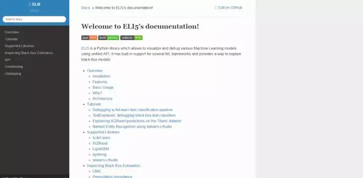 Eli5支持sk-learn、XGBoost、LightGBM、lightning、sklearn-crfsuite等机器学习框架或机器学习库。