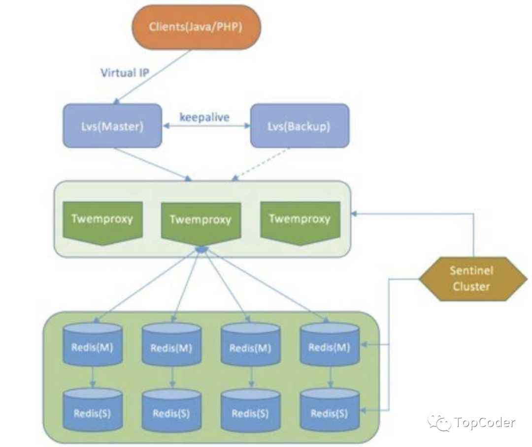 可使用代理服务中间件比如Twemproxy,是一个twtter开源的一个redis和memcache代理服务器。Twemproxy 通过引入一个代理层,可以将其后端的多台 Redis 或 Memcached 实例进行统一管理与分配,使应用程序只需要在 Twemproxy 上进行操作,而不用关心后面具体有多少个真实的 Redis 或 Memcached 存储。