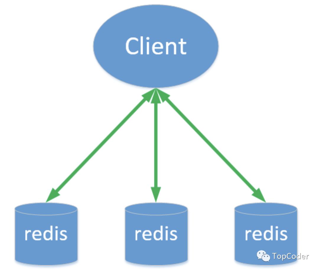 client分片是由客户端决定key写入或者读取的节点,包括jedis在内的一些客户端,实现了客户端分片机制。客户端分片原理图如下: