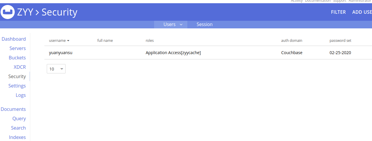 最后一步是安全性,将具有适当权限的CouchBase用户添加到bucket。