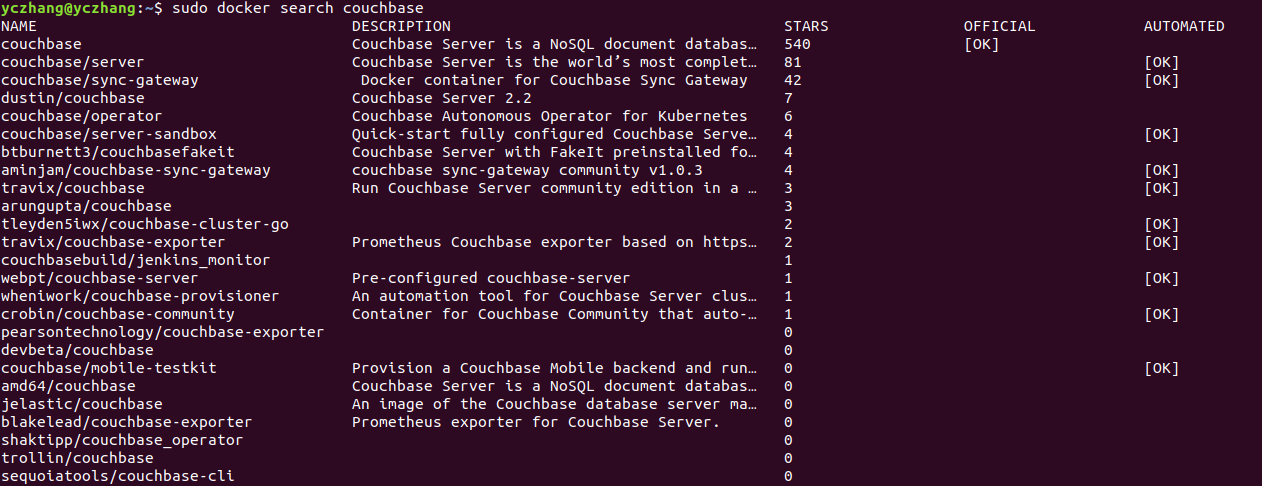 ~$ sudo docker search couchbase