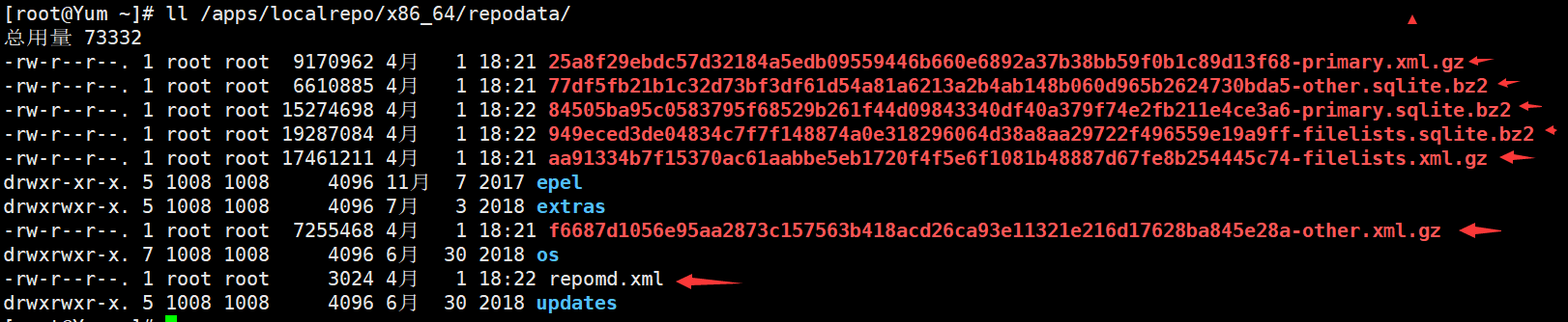 #目录下会生成repodata并还会生成子文件repomd.xml和几个压缩包