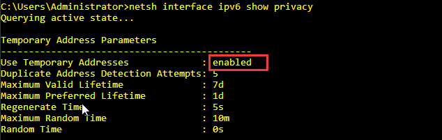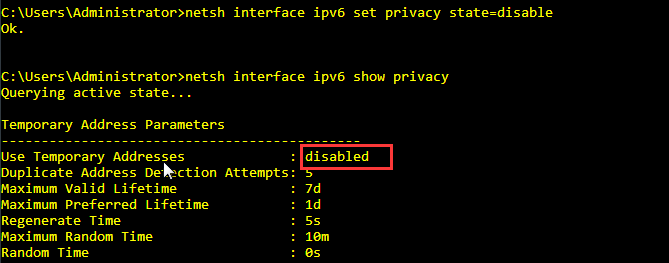 从上图可看出,当前临时地址的状态为enable,下面将其修改为disable