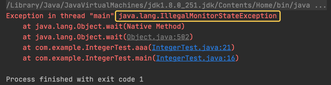 不行,因为不搭配 synchronized 使用的话程序会报错,如下图所示: