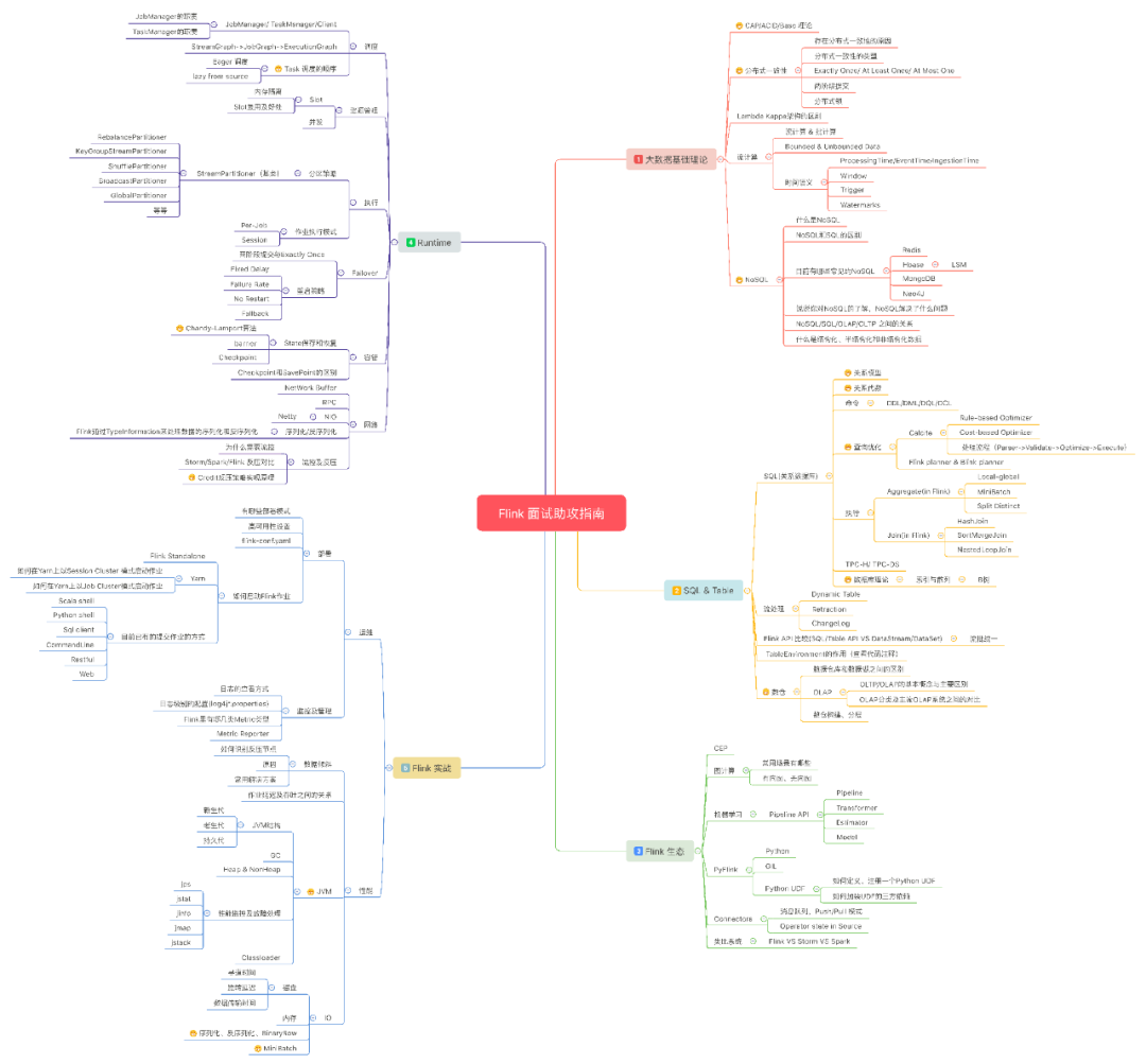 不仅是 Flink,思维导图对面试中可能涉及的数据基础理论也整理成问题供大家参考。