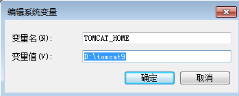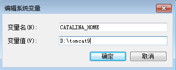 D:\tomcat9(后面没有分号)然后点击“确定”,如图