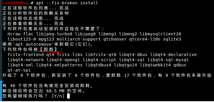 apt-get remove libqtcore4 libqtgui4 fcitx*