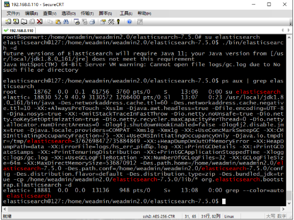 # cd /home/weadmin/weadmin2.0/elasticsearch-7.5.0/