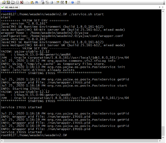 执行以下命令,切换至WeADMIN ITOSS目录(该目录根据您安装的实际目录对命令进行修改)