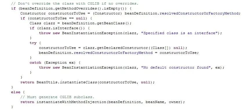 定义一系列的算法,把它们一个个封装起来,并且使它们可相互替换。本模式使得算法可独立于使用它的客户而变化。 spring中在实例化对象的时候用到Strategy模式在SimpleInstantiationStrategy中有如下代码说明了策略模式的使用情况:
