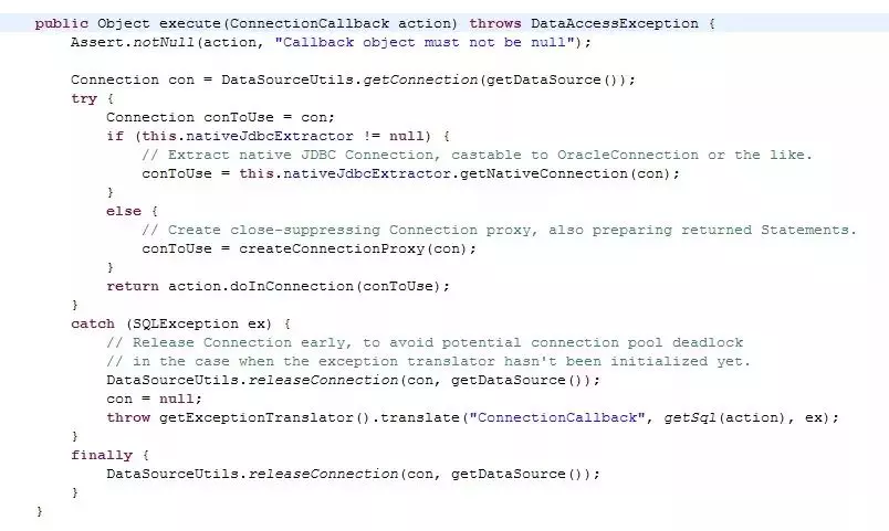 以下是一个具体的例子: JdbcTemplate中的execute方法