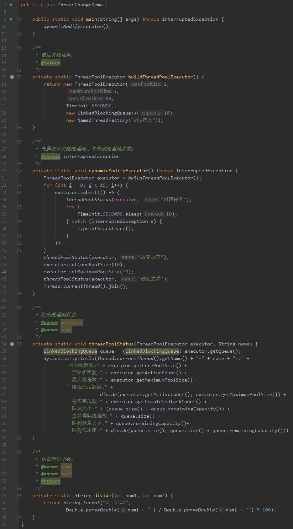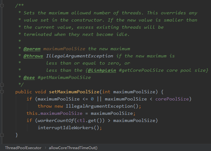 经过前面两个方法的分析,我们知道了最大线程数和核心线程数可以动态调整。