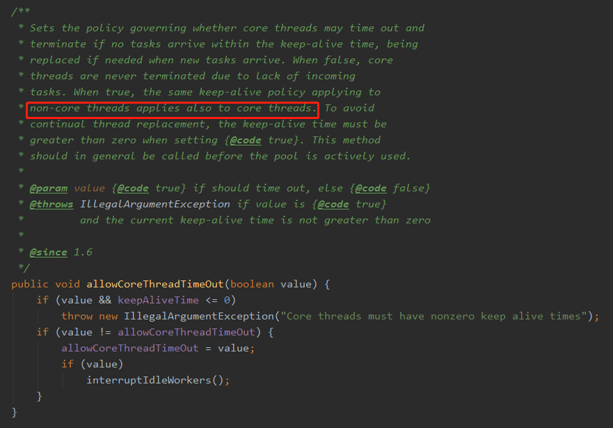 核心线程数默认是不会被回收的,如果需要回收核心线程数,需要调用下面的方法: