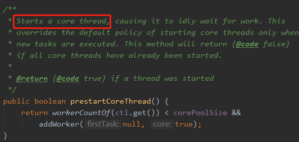 而且我调用了 prestartCoreThread 方法,该方法见名知意,你也知道是启动所有的核心线程数,所有不存在线程没有创建的问题。