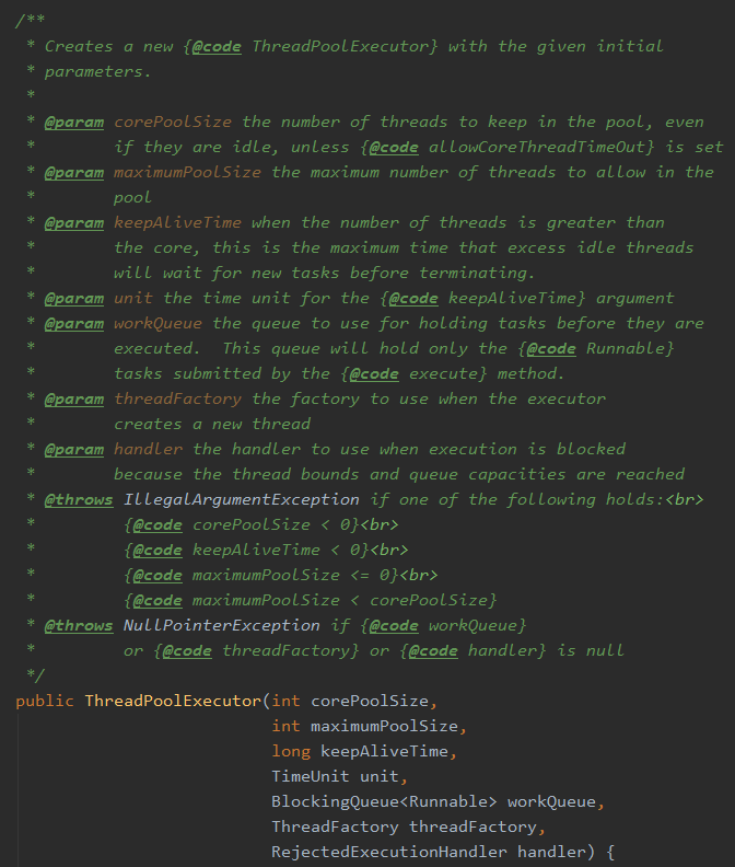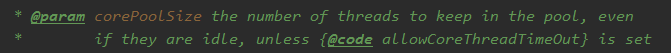 corePoolSize:the number of threads to keep in the pool, even if they are idle, unless {@code allowCoreThreadTimeOut} is set