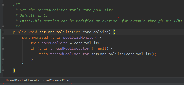注释上写的清清楚楚,可以在线程池运行时修改该参数。