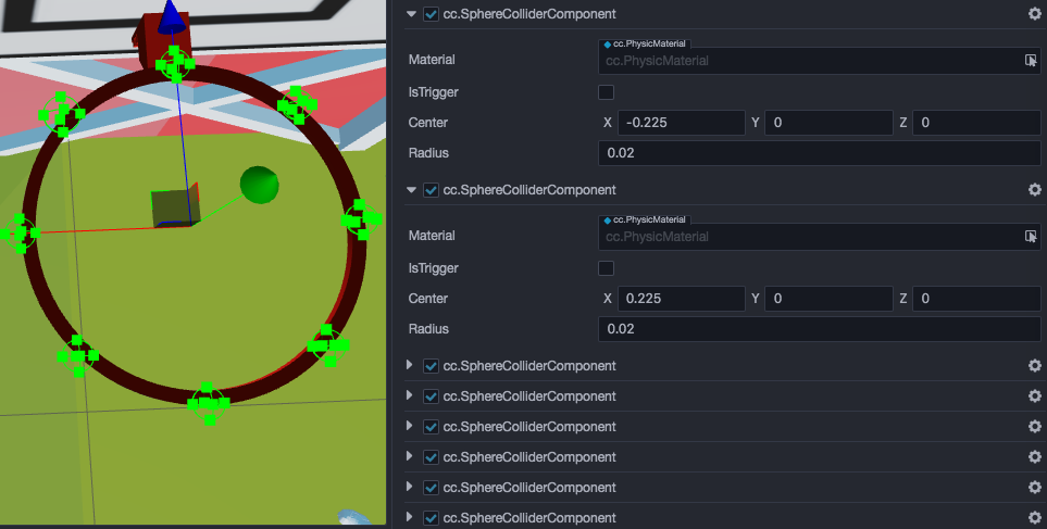 因为没有 圆环碰撞器组件,所以对于篮球框用了多个 球碰撞器组件 实现碰撞检测。