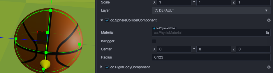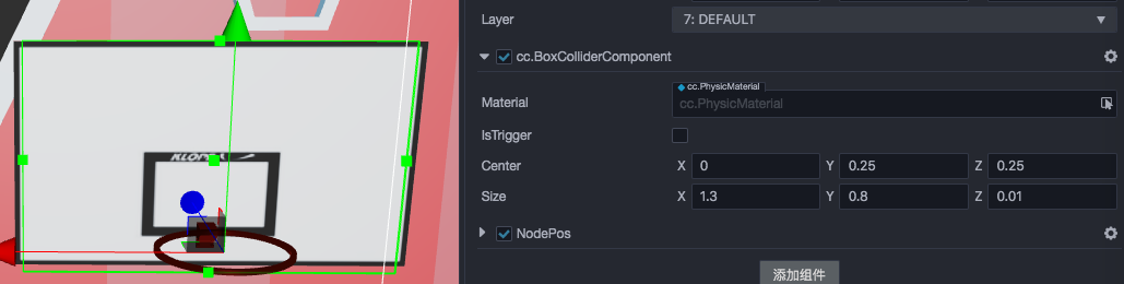 篮板直接使用 盒碰撞器组件(BoxColliderComponent),篮球使用的是 球碰撞器组件(SphereColliderComponent)。