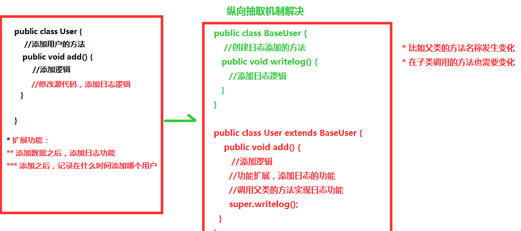 2 AOP采取横向抽取机制,取代了传统纵向继承体系重复性代码