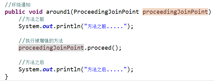 Advice(通知/增强):所谓通知是指拦截到Joinpoint之后所要做的事情就是通知.通知分为前置通知,后置通知,异常通知,最终通知,环绕通知(切面要完成的功能)