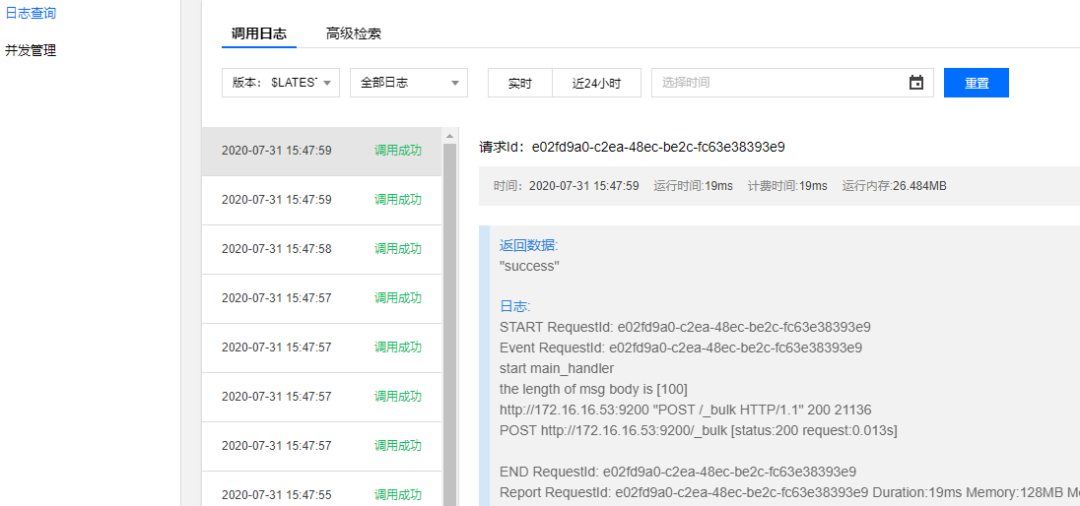 3. 查看 ES 和函数运行日志