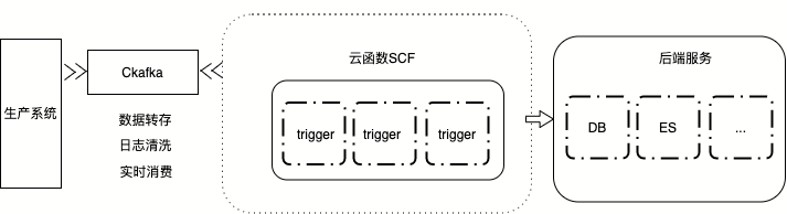 这个时候不妨试试腾讯云 Serverless 云函数,前面提到的 CKafka -> SCF -> CKafka 只是腾讯云 Serverless 云函数支持的 ETL 场景中的一条链路,Serverless 云函数能支持通用的数据处理。