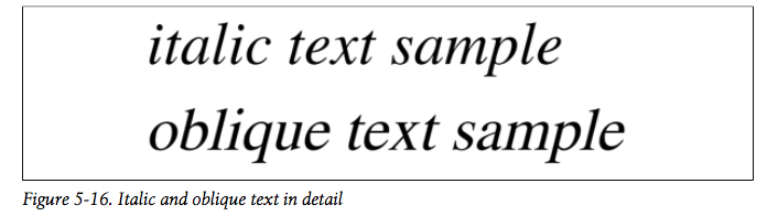 oblique:倾斜,正常竖直文本的一个倾斜版本。标为Oblique、Slanted和Incline的字体总是映射到oblique关键字。