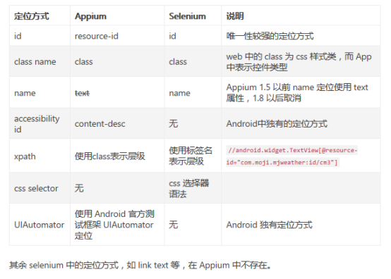 8、 下面是一个大致的 Appium 和 Selenium 定位方式的区别: